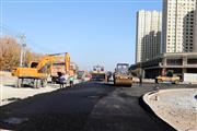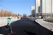 2022年?11月3日,新疆生产建设兵团第六师101团青湖镇南区天津路建设项目施工现场,工人们正在铺设沥青。