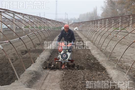 2022年11月7日,新疆生产建设兵团第六师101团青湖镇一连职工在旋耕菜地。