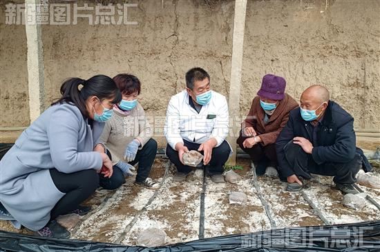 2022年11月4日,温泉县塔秀乡扎很布勒格村万宝永盛种植养殖专业合作社负责人马万宝(右三)在给村民教羊肚菌的制种技术。