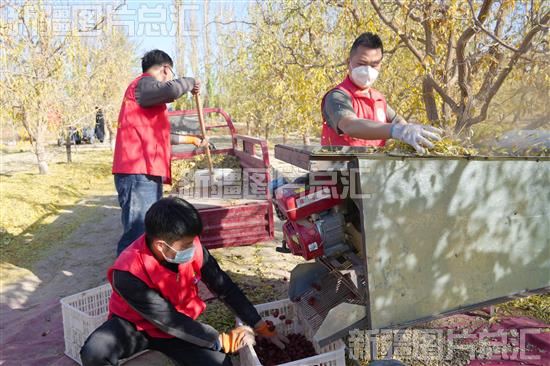 2022年11月1日,若羌县委组织部志愿服务队队员帮助枣农采收红枣 。