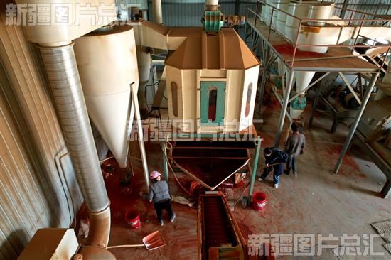 2022年11月1日,位于新疆生产建设兵团第二师22团和静县金丰收农产品种植专业合作社员工在生产辣椒颗粒。