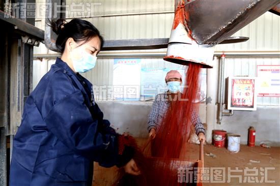 2022年11月1日,位于新疆生产建设兵团第二师22团和静县金丰收农产品种植专业合作社员工在生产辣椒颗粒。