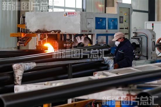 2022年11月9日,新疆共创亚通管业有限公司员工在PVC生产车间作业。