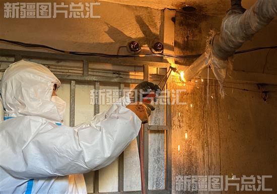 2022年11月9日,乌苏市住房和城乡建设局驻新市区街道文景路社区“访惠聚”工作队队员在抢修破裂的水管。