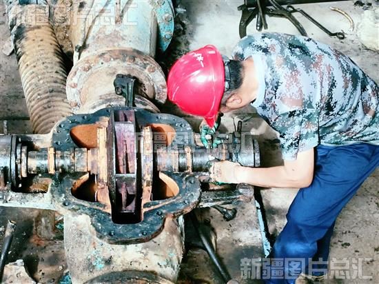 2022年11月11日,和田玉泉水务有限责任公司维修人员对一水厂水泵进行维护保养。 张亚辉 摄