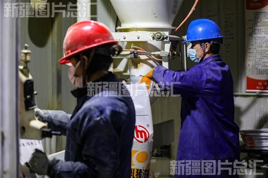 2022年11月17日,新疆傲农生物科技有限公司工人在生产车间工作。?
