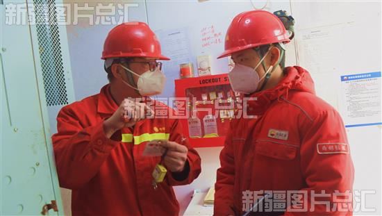 2022年11月16日,准东钻井公司兼职培训师张新权(左)正在金龙2井区JLHW271井钻井施工现场配电房,为青年员工传授技能。