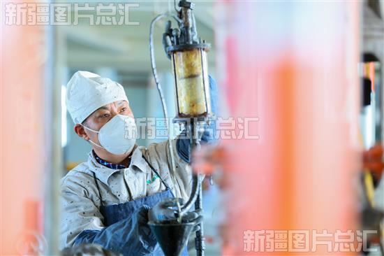 2022年11月18日,新疆渝三峡涂料化工有限公司员工在生产车间检查设备。