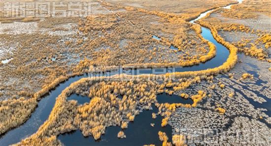 俯瞰博湖县博斯腾湖湿地(2022年11月15日无人机摄)。