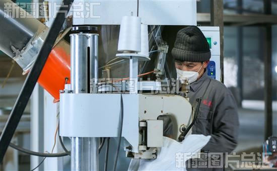 2022年11月21日,呼图壁县石梯子乡的加乐恩草畜养殖农民专业合作社工人在饲料加车间生产饲料。