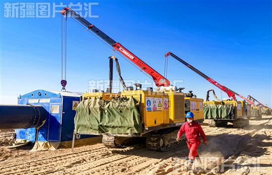 2022年11月14日,位于新疆哈密的西气东输四线二标施工现场,中国石油工程建设有限公司中油(新疆)油建分公司建设者正在巡检。