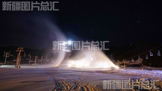 近日,气温逐渐下降,新疆丝绸之路国际度假区造雪机开始工作。