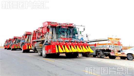 2022年11月6日,新疆生产建设兵团第一师阿拉尔市组织首批19台大型采棉机前往阿克苏地区库车市,助力库车190万亩棉花采收工作。