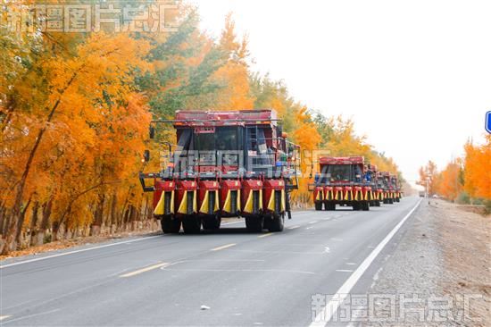 2022年11月6日,新疆生产建设兵团第一师阿拉尔市组织首批19台大型采棉机前往阿克苏地区库车市,助力库车190万亩棉花采收工作。