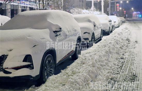 2022年11月27日凌晨,乌鲁木齐市水磨沟区西虹东路路段,车辆被积雪覆盖。