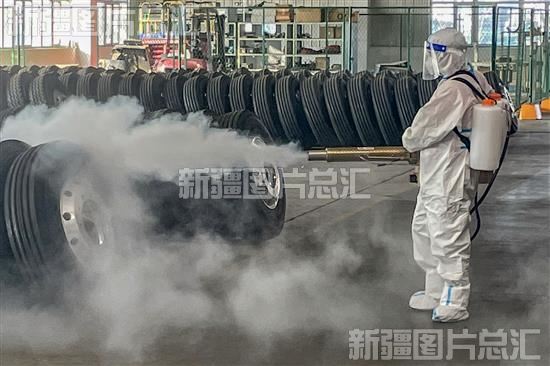 2022年11月28日,陕汽新疆汽车有限公司员工在车间开展消杀工作。