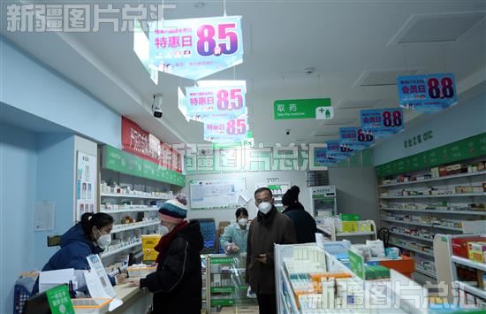 2022年11月28日,市民在乌鲁木齐市水磨沟区劳动街附近的一家药房选购药品。