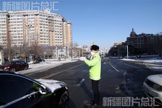 2022年11月28日,交警在乌鲁木齐市水磨沟区西虹东路上执勤。