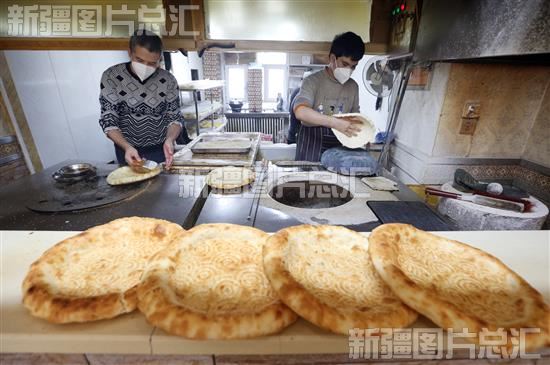 2022年11月29日,乌鲁木齐市天山区青年路一家馕店,工作人员正在打馕。六个人同时工作,供不应求,一天可卖出1000个馕。