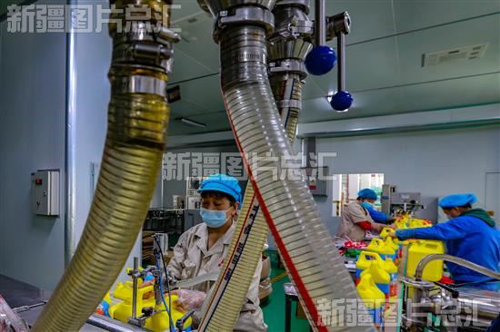 2022年11月28日,纳爱斯乌鲁木齐有限公司员工在生产车间灌装洗涤剂。
