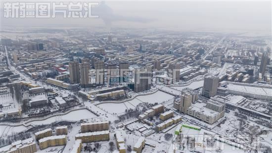 2022年12月1日,雪后的博乐市城区(无人机拍摄)。