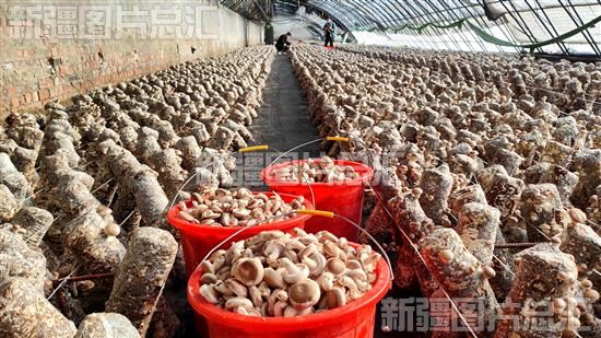 关键字:伊犁哈萨克自治州 伊犁州 察布查尔锡伯自治县 农牧业 食用菌 产业园 大棚 种植 香菇 丰收 员工 采摘 上市 销售 菌棒