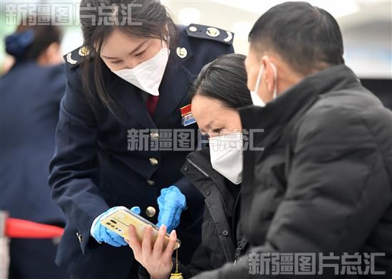 2022年12月6日,工作人员在乌鲁木齐高新区(新市区)政务服务中心协助市民进行“掌上办理”。