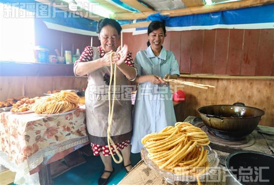 2022年7月7日,工作队队员在和村民一起制作馓子。