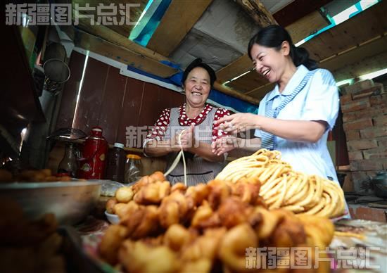 2022年7月7日,工作队队员在和村民一起制作馓子。