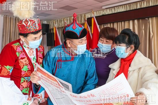 2022年11月30日,乌兰牧骑队演员在扎勒木特乡浩图尔哈牧业队向村民宣讲党的二十大精神。