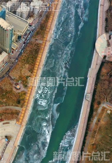 “大雪”节气过后,库尔勒市气温迅速下降,孔雀河进入结冰封河时期,从空中看,半冰、半水的孔雀河和时而觅食、时而飞翔的天鹅,呈现出一幅美丽的冬季画卷。