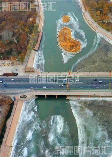 库尔勒:孔雀河结冰了