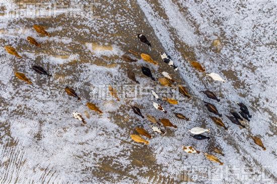 2022年12月9日,克拉玛依市乌尔禾区的牧民赶着牲畜转场(无人机拍摄)。