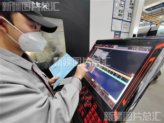 2022年12月13日,位于乌鲁木齐经济技术开发区(头屯河区)的卓朗新疆智能机械有限公司,员工在生产车间操控设备。