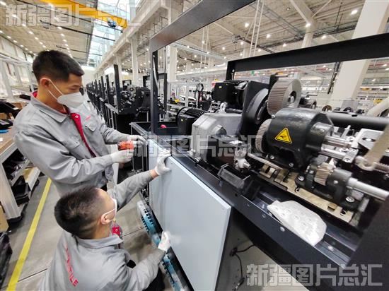 2022年12月13日,位于乌鲁木齐经济技术开发区(头屯河区)的卓朗新疆智能机械有限公司,员工在生产车间组装设备。