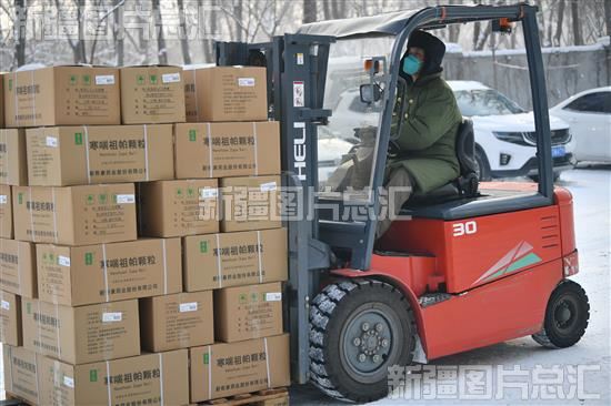 2022年12月15日,位于乌鲁木齐高新区(新市区)北区工业园的新奇康药业股份有限公司,员工在转运药品。