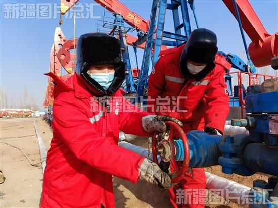 2022年12月14日,位于温宿县托乎拉乡托万克苏布拉克村的中曼阿克苏油田温13采油井,采油工人在开阀门。