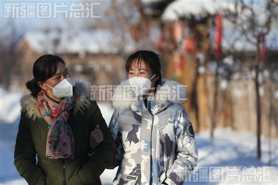 2022年12月15日,游客在木垒哈萨克自治县英格堡乡月亮地村散步。
