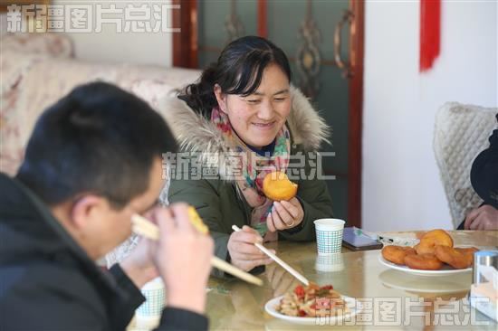2022年12月15日,游客在木垒哈萨克自治县英格堡乡月亮地村民宿品尝美食。