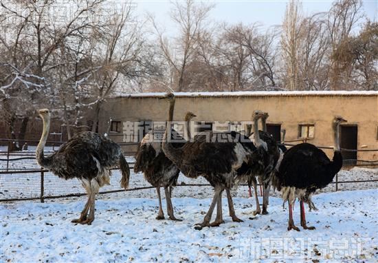 2022年12月13日,呼图壁县大丰镇高桥村科祥鸵鸟养殖农民专业合作社里的鸵鸟。