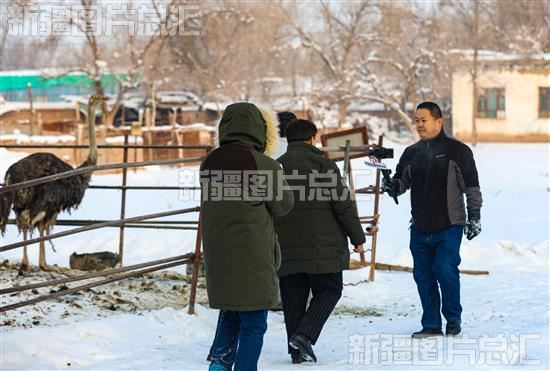 2022年12月13日,呼图壁县大丰镇高桥村科祥鸵鸟养殖农民专业合作社,记者在现场直播养殖。