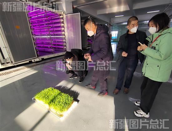 2022年12月13日,市民参观新疆紫晶川梭高新农业股份有限公司智能种草箱和饲草。