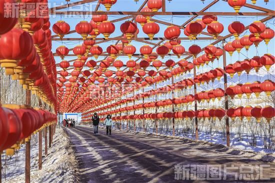 2022年12月15日,游客通过灯笼走廊进入那拉提国际滑雪场。