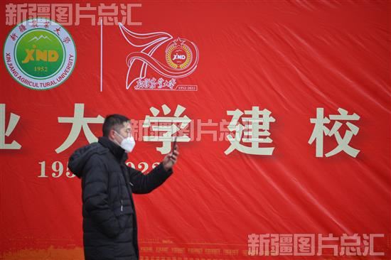2022年12月18日,庆祝新疆农业大学建校70周年大会在新疆农业大学八一会堂举行。图为教职工在校园内拍摄。