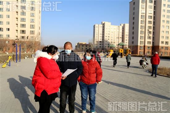 2022年12月18日,志愿者在新疆生产建设兵团第二师22团幸福小区休闲广场,向居民进行冬季流行性疾病科普宣传。