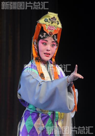 2022年12月17日,2022年乌鲁木齐市文化惠民演出秦腔折子戏专场在乌鲁木齐市新中剧院上演。图为乌鲁木齐市秦剧团演员在表演的秦腔折子戏《数罗汉》。