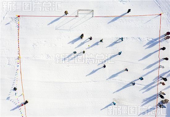 2022年12月17日,昌吉市努尔加滑雪场,小朋友在进行雪地足球赛。