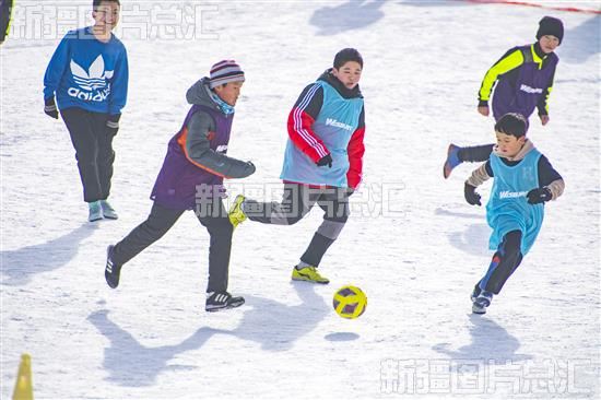 2022年12月17日,昌吉市努尔加滑雪场,小朋友在进行雪地足球赛。
