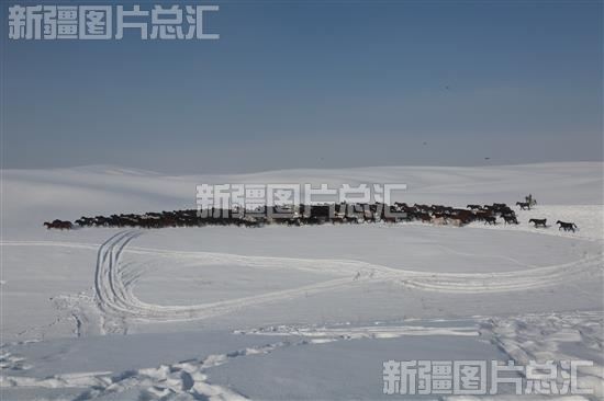 2022年12月23日,昭苏县马场牧民正赶着骏马在雪海里穿行。马群奔腾在无垠的雪原上,卷起飞扬的雪雾,气势如虹。