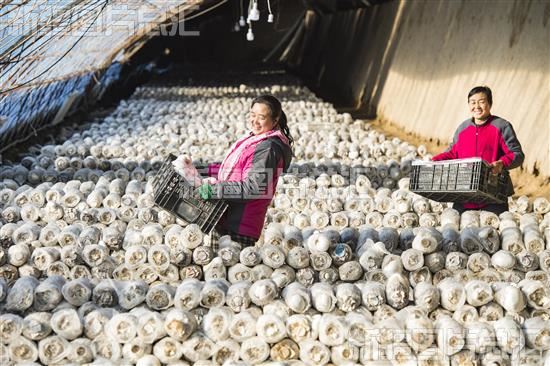 2022年12月22日,吉木萨尔县大有镇大有村设施农业基地新疆三众食用菌有限公司大棚,村民在采摘阿魏菇。
